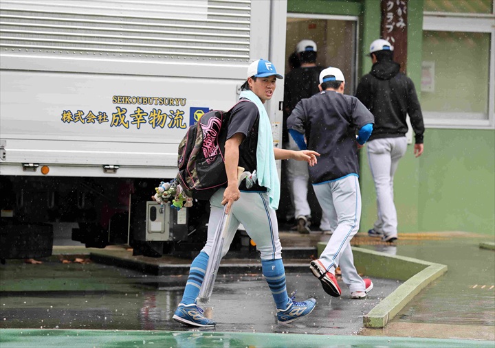 明瀬選手の打球が寮の前に駐車していた車に当たったようで騒いでいた