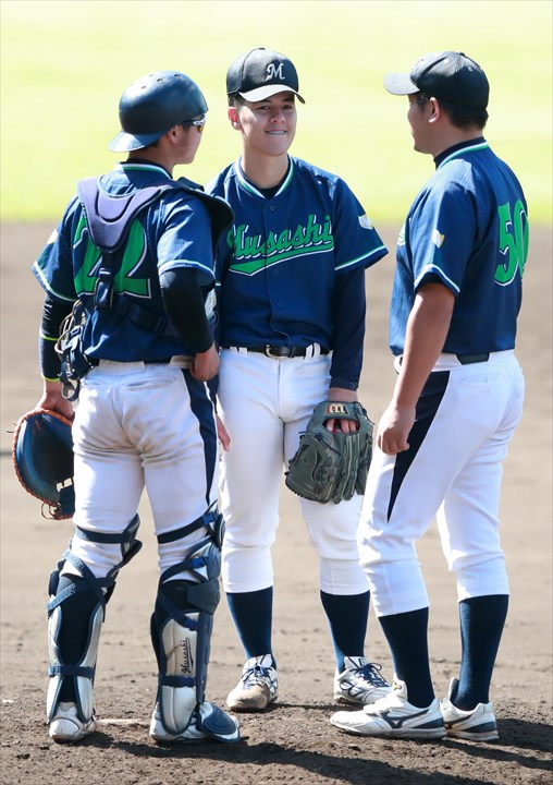【写真1】先発中村勝投手 【写真2】4回表:白村投手 【写真3】8回表:高山投手 【写真4】9回表:宮台投手