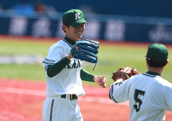 神奈川大学 1:SS 江越7 2:2B 夏井10 3:CF 梶原28 4:DH 政井3 5:1B 渡邊諒26 6:3B 伊藤佳5 7:RF 小材25 8: C 奥村12 9:LF 伊三木 P 重田17