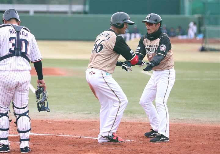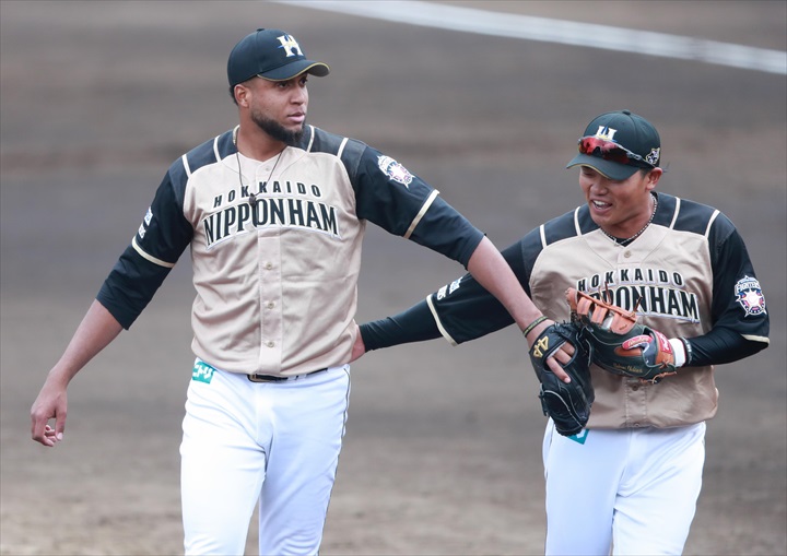 鎌ヶ谷ファイターズ 1:SS 平沼45 2:2B 難波55 3:LF 森山44 4:DH 高濱62 5:1B 大嶋66 6:3B 渡邉23 7:CF 杉谷2 8: C 石川亮68 9:RF 姫野61 P ロドリゲス41