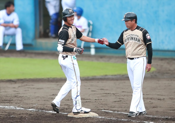 鎌ヶ谷ファイターズ 1:SS 平沼45 2:DH 高濱62 3:CF 岡18 4:RF 森山44 5:3B 森本24 6:LF 宇佐美50 7:1B 今井70 8: C 郡60 9:2B 大累32 P 高良40