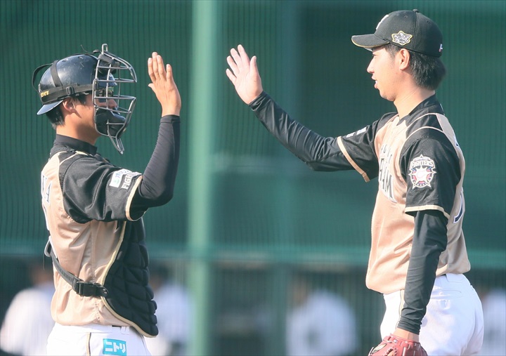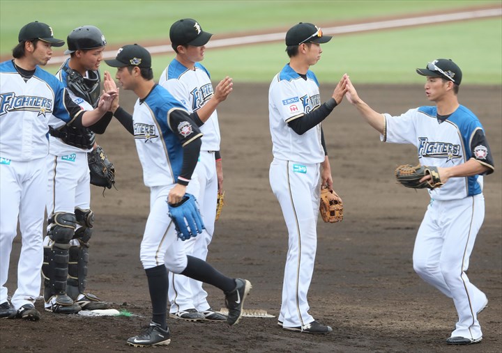 鎌ヶ谷ファイターズ 1:CF 岡18 2:LF 岸里67 3:2B 渡邉23 4:RF 森山44 5:3B 高濱62 6:DH 平沼45 7:1B 今井70 8: C 石川亮68 9:SS 太田賢65 P 斎藤佑1