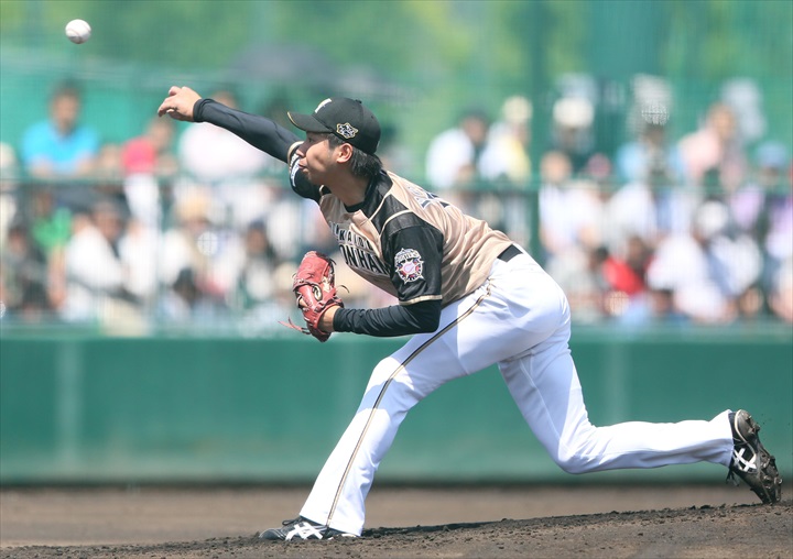 【写真1】先発 斎藤佑投手 【写真2】5回表:今井選手センターオーバーのタイムリー3ベース 【写真3】6回裏:瀬川投手 【写真4】8回裏:白村投手