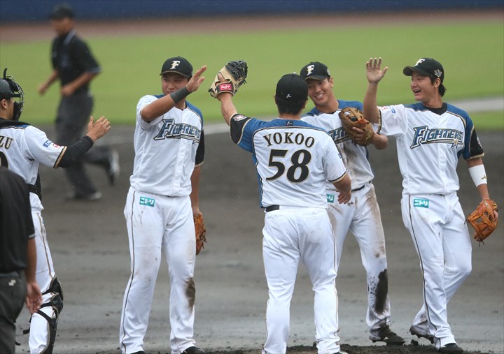 ■9回表 F 4−4 Bs 投手交代 P大山→高木36 太田 ストレートの四球 R1 雨が強くなり中断し、そのまま降雨コールドゲーム