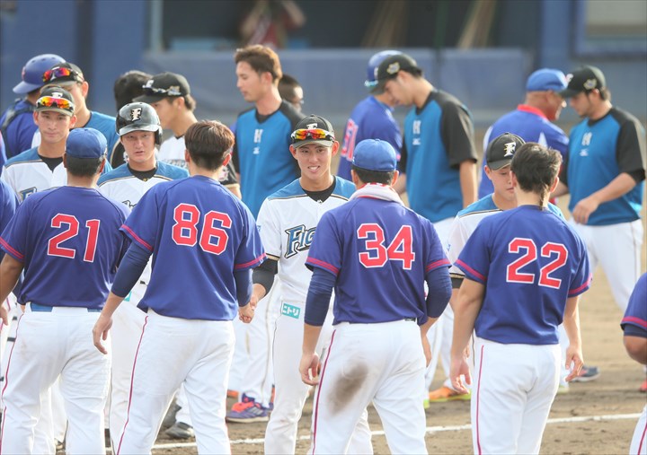 鎌ヶ谷ファイターズ 1:LF 淺間26 2:2B 太田65 3:3B 森本24 4:RF 石川慎49 5:DH 高濱62 6:CF 岸里67 7:1B 宇佐美50 8:SS 平沼45 9: C 石川亮68 P 上沢63