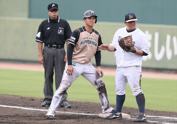 ■5回表 F 1−2 Bs 石川亮 SS飛びつきグラブで弾く内野安打 R1 淺間 1Bゴロ 2Bアウト R1 太田 R盗塁成功 R2 RFフライ R3 森本 3Bライナー
