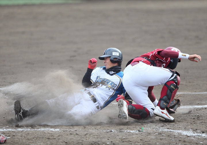 ■1回裏 F 0−1 Ys 今浪 SS内野安打 R1 三輪 Pゴロ R2 廣岡 CFオーバータイムリー3ベースヒット 1点 R3 武内 2Bゴロ 3BRそのまま 飯原 フルカウントから 四球 R1・3 奥村 SSゴロ