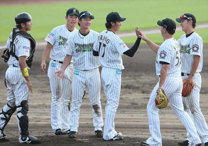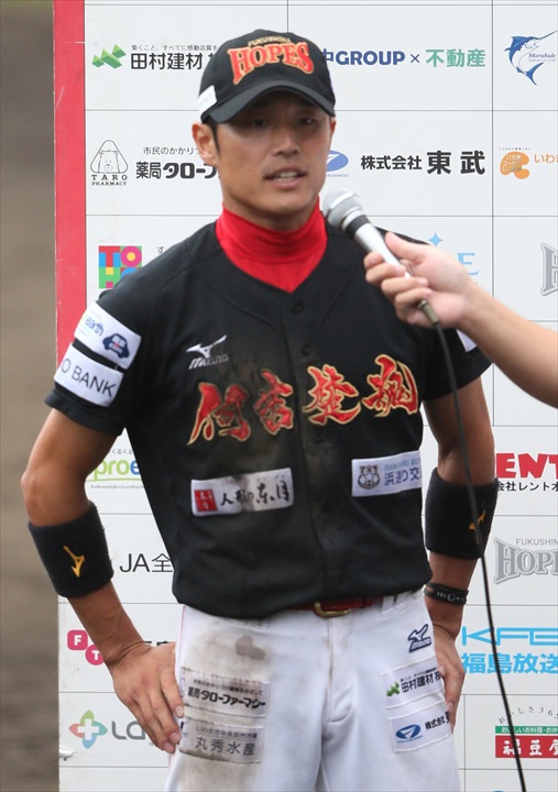 福島ホープス 1:SS 岡下3 2:2B 佐々木4 3:CF 貴規8(元ヤクルト) 4:DH 高橋58 5:1B 生島6 6:RF 小倉41 7:3B 小林9 8: C 笹平5 9:LF 村田(元日ハム) P ロペス43