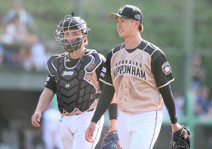 ■1回裏 H 1−3 AB 野呂 RF前ヒット R1 足立 R盗塁成功 R2 Pゴロ R3 キャンディラス デットボール(腕) R1・3 ジョージ 空振り三振 荻島 フルカウントから 四球 R満塁 平野 SSゴロ 送球逸れて悪送球タイムリーエラー 2点 R1・3 真田コーチマウンドへ 稲葉 LF前タイムリー2ベースヒット 1点 R2・3 佑紀 見逃し三振