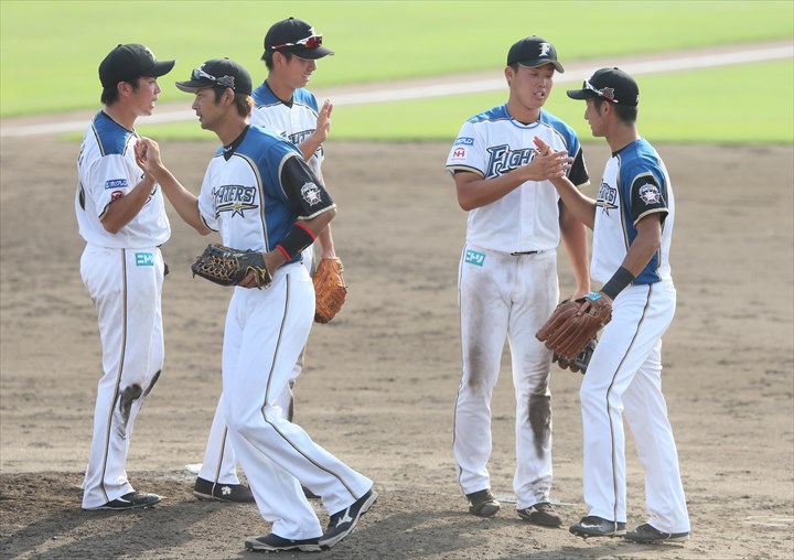 鎌ヶ谷ファイターズ 1:DH 松本12 2:RF 淺間26 3:1B 佐藤賢52 4:LF 谷口64 5:3B 高濱62 6:SS 渡邉23 7:2B 大田65 8:CF 岸里67 9: C 清水10 P 上沢63