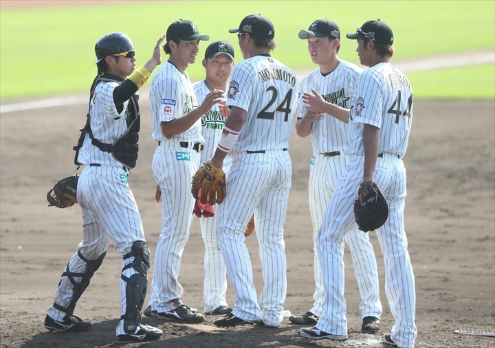 鎌ヶ谷ファイターズ 1:LF 宇佐美50 2:DH 松本12 3:CF 淺間26 4:RF 鵜久森44 5:3B 高濱(弟)62 6:SS 太田65 7:1B 荒張60 8:2B 森本24 9: C 石川亮68 P 斎藤佑18
