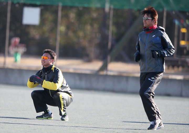 グランドに戻って ストレツチ体操を行い 数歩走ってジャッジなどを繰り返す。