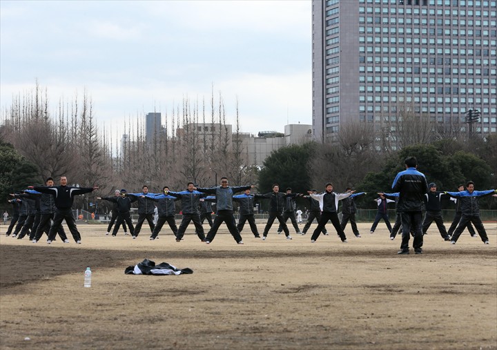 なんだか着ているジャンパーから 警備会社の集団に見えないこともない