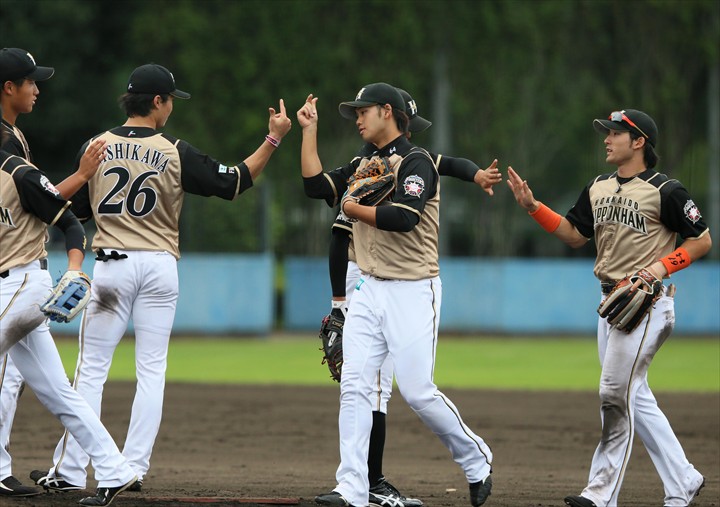 鎌ヶ谷ファイターズ 1:3B 中島56 2:SS 松本12 3:2B 西川26 4:RF 石川49 5:DH 近藤54 6:LF 谷口64 7:CF 杉谷61 8: C 荒張60 9:1B 森本24 P 新垣28