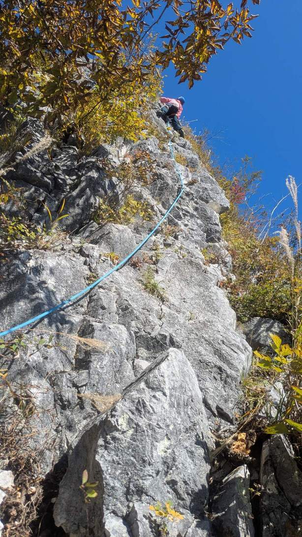 3P目 25m 歩き mikkoリード 目の前の岩稜を目指して進みます。