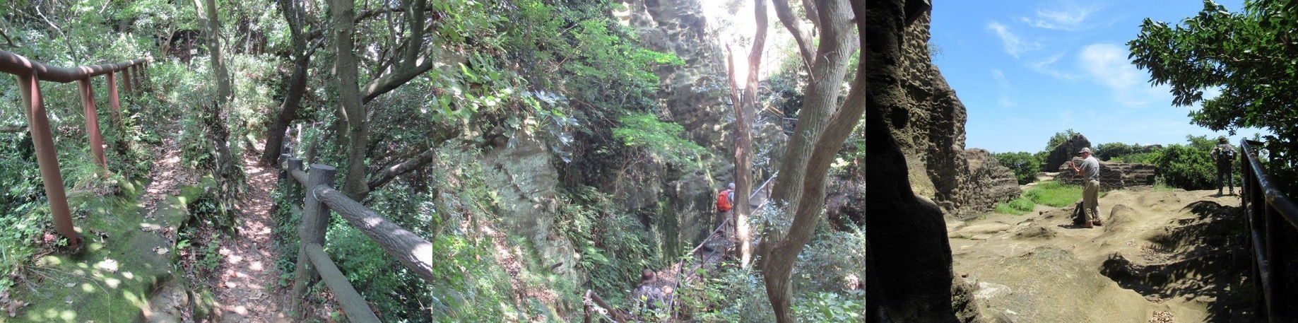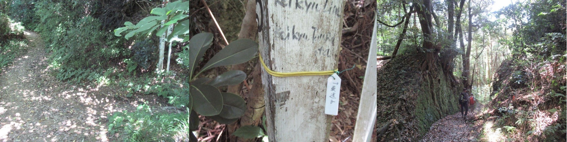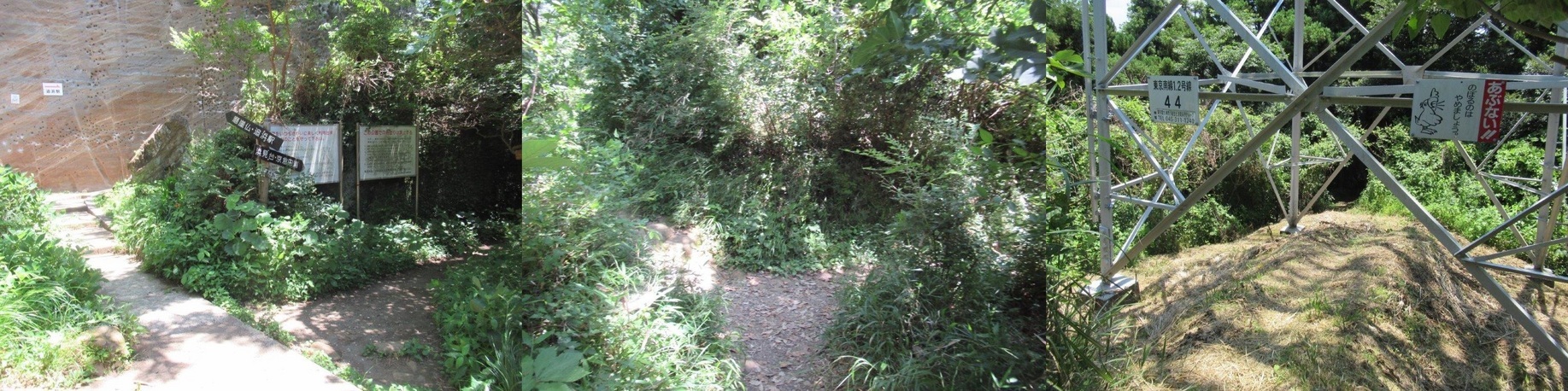 写真(鷹取山の下り) 下り始めた 京急田浦方面の道へ ふたつの道に分岐 右へ 鉄塔下の道だが この先で通行止めに (道を間違えた)