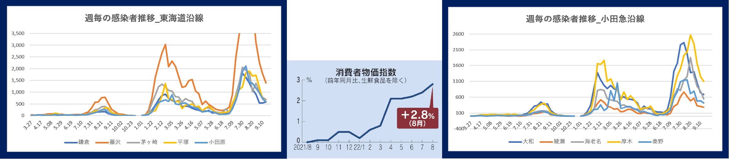 写真 東海道線と小田急沿線のコロナ感染者 減ってはきているが まだまだ 物価が2.8%の上昇 これから急増しそうだ
