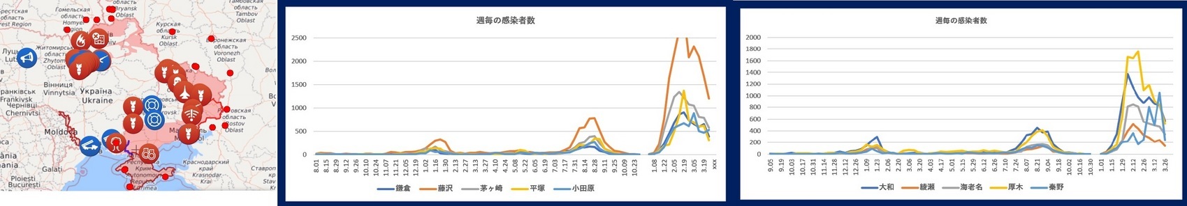 写真 ウクライナ周辺のロシア軍基地 小さな赤い丸 これを攻撃すれば 東海道線 小田急沿線の感染者 小田原が減りませんね