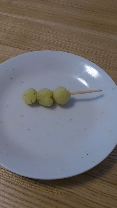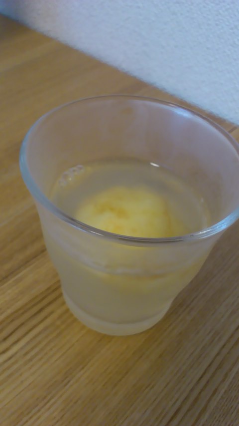 材料は、桃1個、砂糖30g、レモン汁大さじ1、粉ゼラチン10g、桃用(水、砂糖、レモン汁)です。@桃を水、砂糖、レモン汁の中に付けておきます(分量は適当)。A鍋に桃の皮を入れ、浸るくらいの水を入れ沸騰させます。B皮を取り除き、水を250cc足し、砂糖を入れます。C沸いてきたら火を止め粉ゼラチンを入れよく混ぜます。Dボウルに移し、氷水にあて混ぜながらとろみが出たらレモン汁を加えます。EDを器に桃と入れ、冷蔵庫で冷やし出来上がりです。本当はミントの葉を飾ればお洒落だったのですが。この分量は、ガラスのコップ4個分です。前に作った洋風芋ようかんも一緒に作りました。子供からようかんを手で丸めた芋だんごをもらいました。美味しかったです。