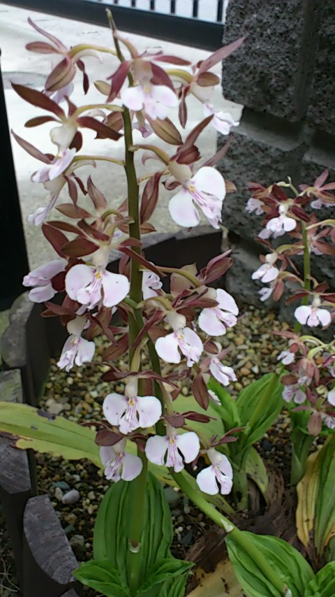 30数年前、親と里山で採取した海老根が今年も咲いた。毎年6から7箇所から茎を出し、花を咲かせるのだが、今年は3箇所しか茎を出さなかった。ネットでいろいろ調べて見ると、海老根特有の病気があるようだ。この病気を防ぐことはできないようだが、枯らさない様に大事にしたいと思う。
