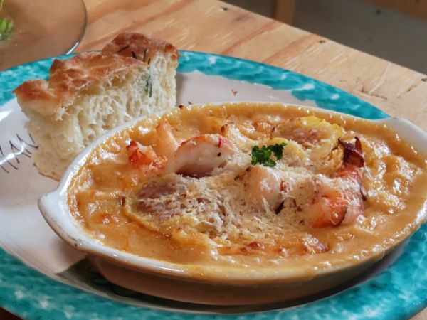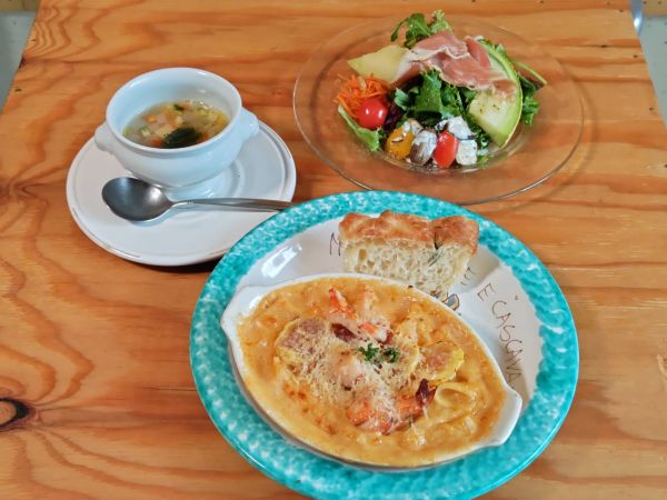 グラタンはエビとイチジクが!フォカッチャもついてきます