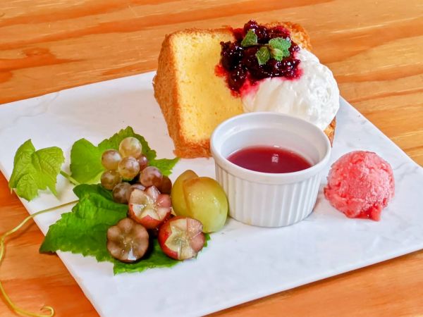 シフォンケーキff(税込)800円 ※果物は季節によって変わります今回はブドウがセットでした🍇