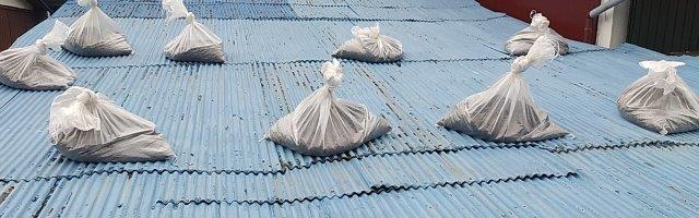 砂利を入れて土嚢をつくり