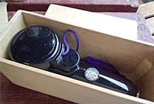 お墓参りに行くときに 婆さんが持参する お線香の点火器「ご先祖まいり」なのですが ポーチが付いていますが 使用後には点火部が熱くなり そのままポーチに収納できないので 木箱を製作することに。