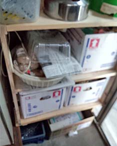 | 勝手口に棚を・・・・ | 以前から土間には 棚は有ったのですが 使い勝手が悪く・・・・