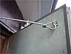 | 勝手口ドアの細工で・・・・ | ドアクローザーは取り付けていないので 開けっ放しで固定は出来ないので ステンレス棒とヒートンで解放固定できるように・・・・