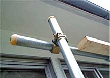 | クランプ交換・・・・・・ | 昨日、取り付けた UVカット オーニング&スクリーンを取り付けている 足場パイプのクランプを交換しました。