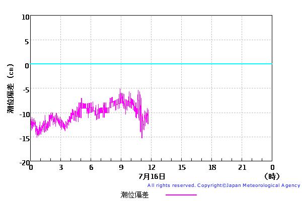 佐渡[気象庁]の潮位の実況(7月16日)です。