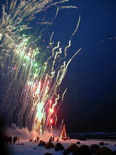 | あの頃の僕は 2000年 花火 | 宗谷岬の元旦の年明け0時の花火。 雪の中・・・ 寒〜い。