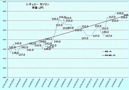 右肩上がり(>_<) 昨年の6月頃は140円台前半でした。