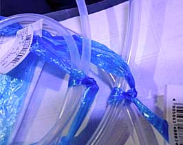 担当者(アルバイト?パート?)が 切断して丸めて・・・・・ ナイロン紐でコブ結び。
