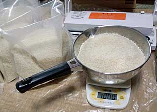 | お米の包装・・・・・ | 昼に通販で購入した脱酸素剤が届いたので 先日、親戚から送っていただいた頂いた お米を脱酸素剤を入れて真空包装しました。