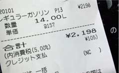 レギュラーの表示価格は157円/Lでしたが クレジット決済で155円/Lに。