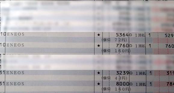 その結果が12月の明細で 5364円分の給油で72円(36L)減額 5292円。 1000円で15ポイントの付与が付くので 以前のガソリンクレジットカードより 少しお得感が生まれました。