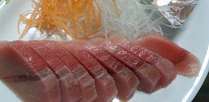 | 昨晩のおかず・・・・・・ | メバチ鮪です。 解凍して頂きました。