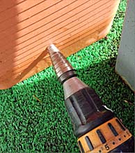 | 食器棚の角が・・・・・ | 食器棚の扉の角が鋭いので ホームセンターで クッションを購入して取り付けました。