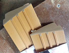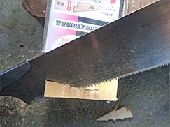 昔の使用していない三角標示板を切断して 穴をあけて木ネジで固定です。