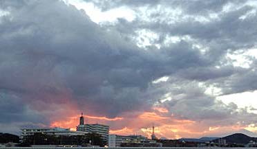 雲に反射してあかね色に。