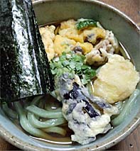 自宅で揚げた天婦羅を乗せて。