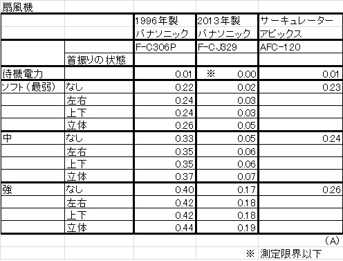 最弱風での電流値は 1/10 以下です。