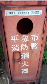 | 防災用の消火器が・・・・ | 数日前の事ですが 面したところのある 市で設置した消火器が 盗まれていました。 扉は以前から破損していましたが・・・・・  市消防署に電話連絡すると 盗難、いたずらなど頻発しているそうで、 「確認してみます。」と 時間をおいて連絡が。 近くで消火器が見つかったようです 街頭消火器は 平塚市では大地震に備えて、 昭和48年から地震対策用消火器(街頭消火器)を市内各所に設置し、 現在では約6100本になっています。 この消火器は、もっとも普及されている粉末消火器で電気火災、 油火災(ガソリン・灯油)普通火災(木材・紙・繊維)等の消火に適しています。 万が一の時には安全栓を引き抜き、レバーを握るだけで、 誰でも簡単に使え、火災初期の消火に有効です。 市街地では約50メートルごとに設置していますので、 自宅周辺にある街頭消火器を確認してみてください。  ※ 最近の5件。 ※ 最近の一覧。 平塚市 消防本部 防災 街頭消火器 地震対策用消火器 サイト内の検索が出来ます。 あの頃 の easy my web ボクらは いつか 見た 青い 空と 緑 大地 軌跡 イルカ IRUKA YouTube 歌詞「」あのころ あの 日 時 場所 ぼくは 僕らは 綺麗な 空 蒼い 葵 碧い 藍い 何時か 観た 看た 宙 天 大空 僕達は ボク 達は 時間 湘南 SHONAN SYOUNAN 西湘 SEISHO SIYOUNAN In those days I saw the blue sky one day? I was in those days A Patch of Blue is it? At that time From back then What I did at that time? Eventually saw그 무렵의 나는 언젠가 본 푸른 하늘은? 在那些日子里我看到了蓝天一天?我在那些日子里 蓝色补丁是什么呢?In jenen Tagen sah ich den blauen Himmel einen Tag? Ich war in jenen Tagen A Patch of Blue ist das? En ces jours, jai vu le ciel bleu un jour? Jétais à cette époque Sono stato in quei giorni In quei giorni ho visto il cielo azzurro un giorno? A Patch of Blue è? В те дни я увидел синее небо один день? дня яEn ces jours, j ai vu le ciel bleu un jour? Eu vio céu azul algum dia? Me daqueles dias....人気ブログランキングへ |