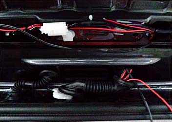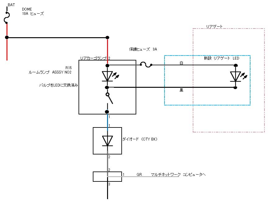 リアの横のカーゴルームランプのスイッチ部分に接続です。