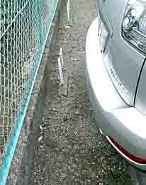 3枚目 車外から縁石とフェンスの位置関係。