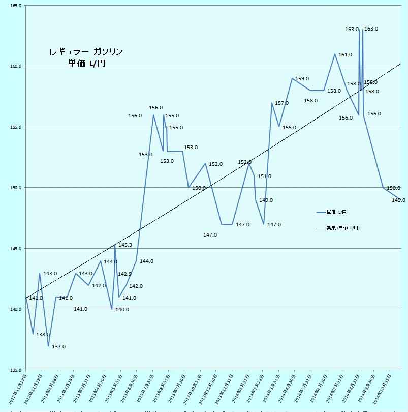 2014/11/21 10:57:00| 車・・・・ | ガソリン価格と灯油・・・・・ | レギュラーガソリンはカードで149円/L