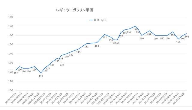 ガソリン価格レギュラーは