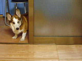 この曇りガラスの向こうには、テラのドッグフードやオモチャ等が置いてある棚が有ります。